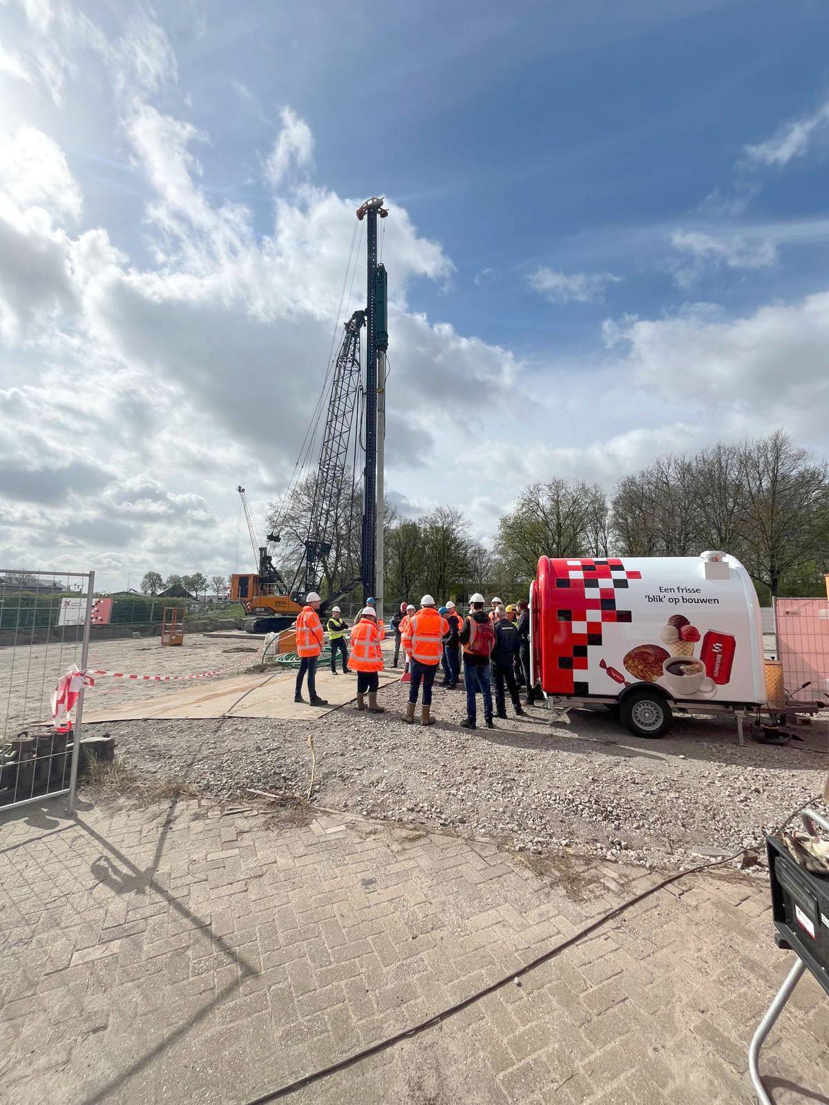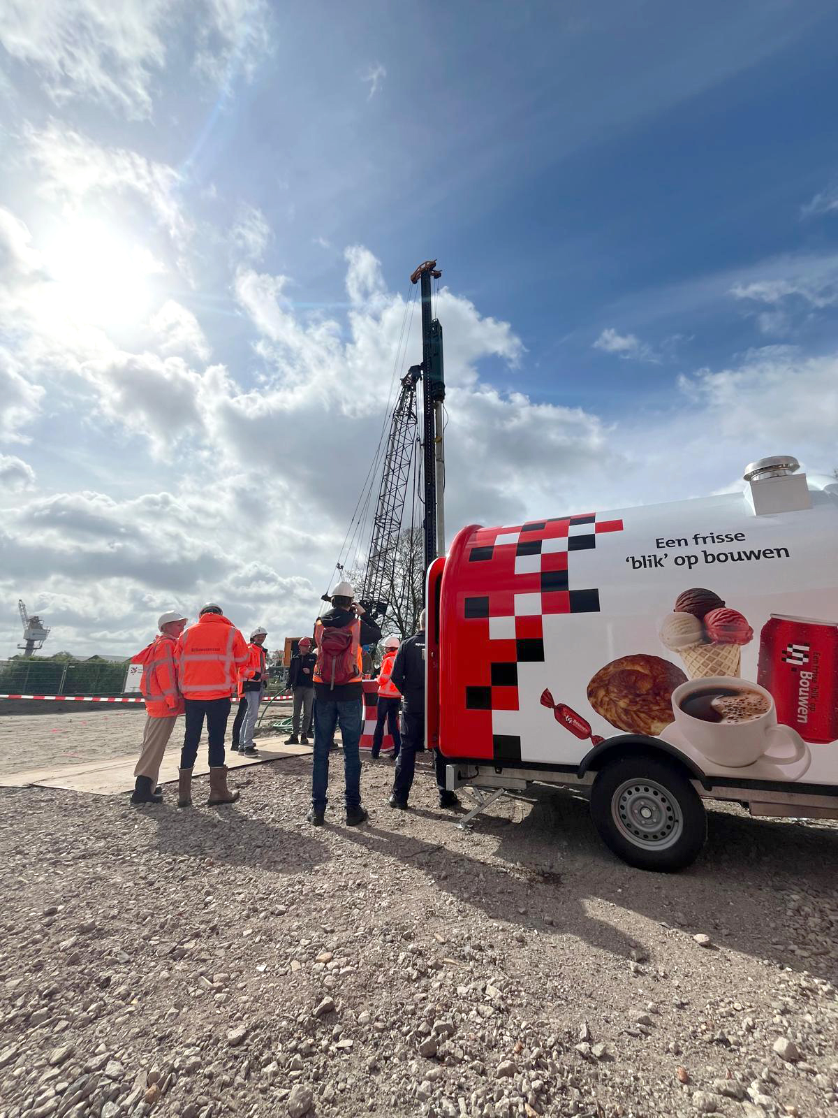 Samen met alle betrokkenen hebben we dit moment gevierd op de bouwplaats. Onder het genot van een bak koffie en gebak uit onze Bouwgroep Schrijver koffiekar.