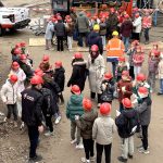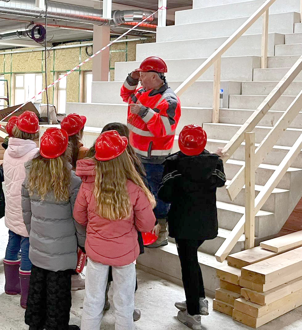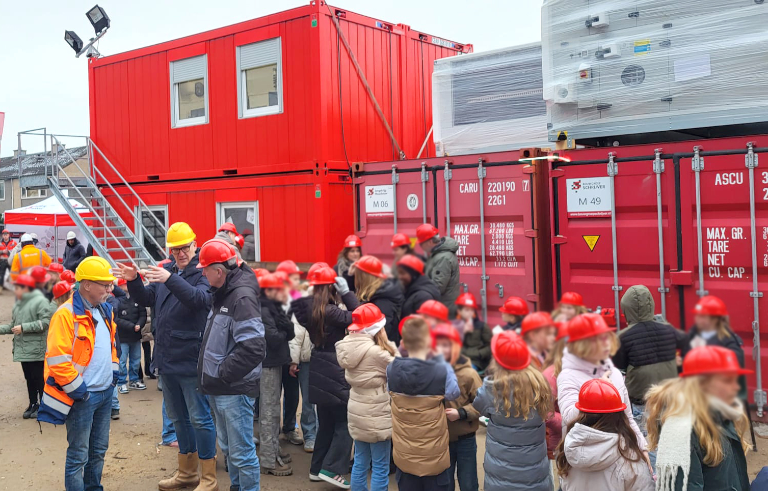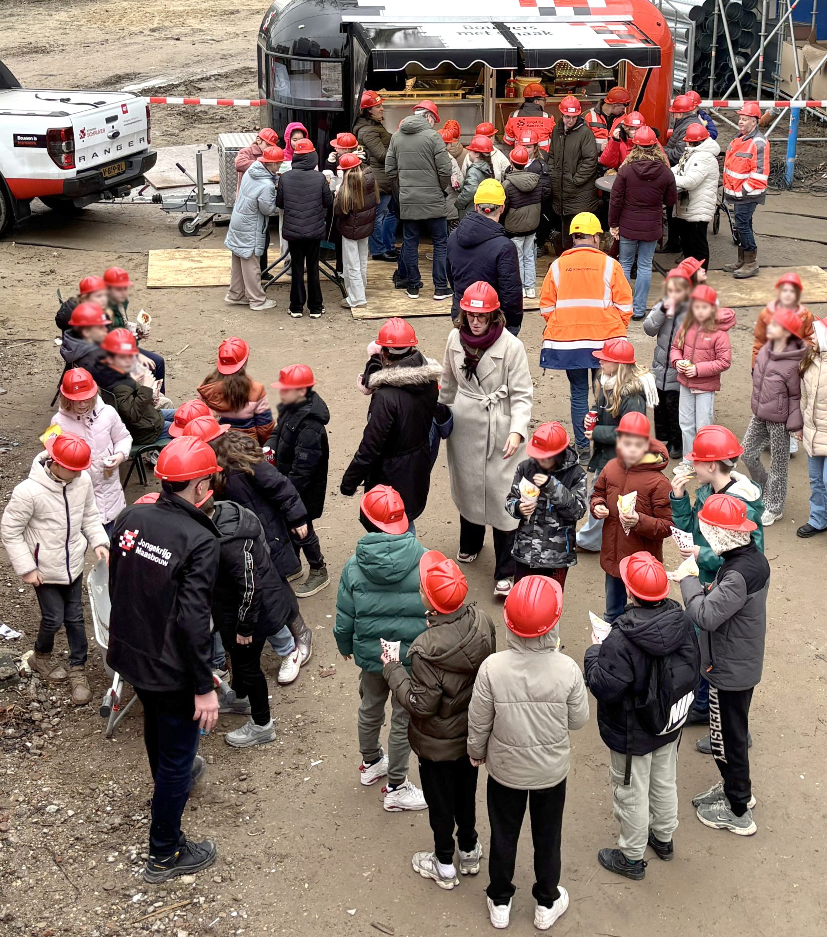 Maar naast alle volwassenen was het vooral een feest voor de 154 kinderen. Vol spanning mochten zij hun toekomstige school verkennen. Gewapend met een echte bouwhelm en een frietje keken ze hun ogen uit!