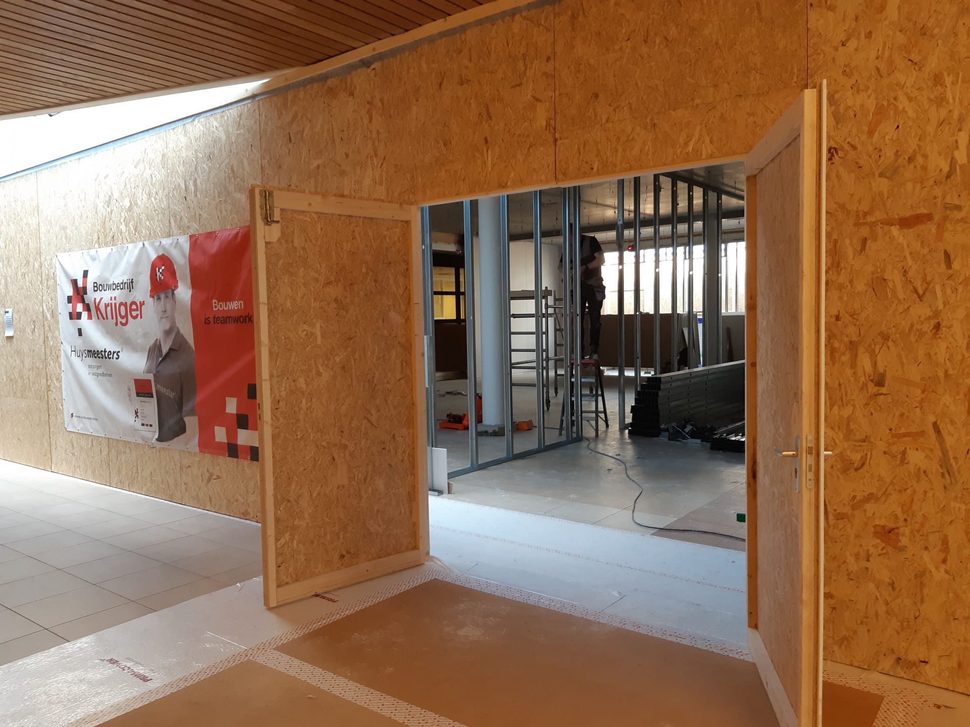 Achter de schermen wordt hard gewerkt. De nieuwe behandelruimtes van Huisartsenpraktijk Vliethof Tholen krijgen al goed vorm. Dankzij de stofschermen kan de praktijk open blijven tijdens de werkzaamheden. Stadlander Huysmeesters; ontzorgers in vastgoedbeheer.