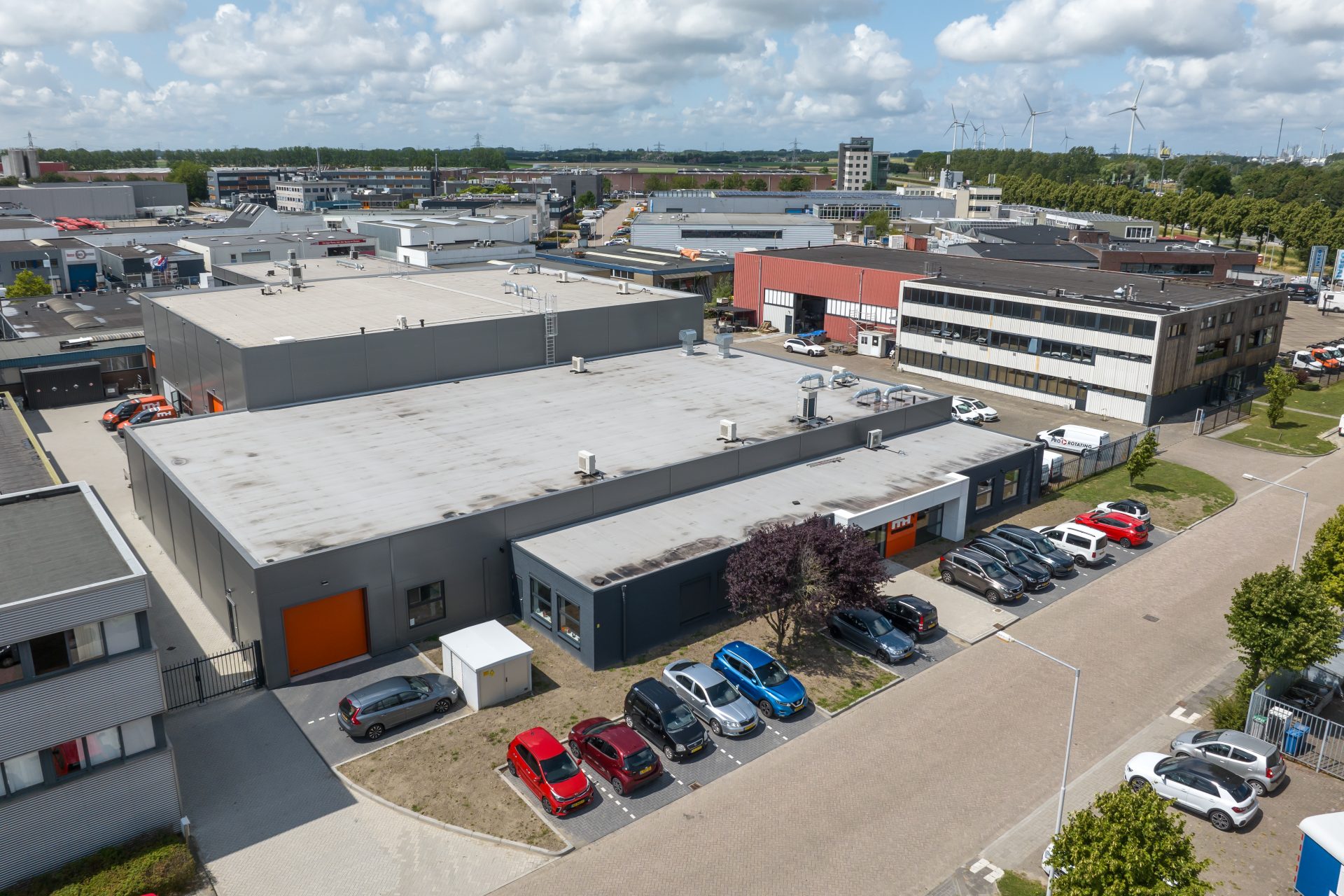Vanwege de wens van de opdrachtgever om op één locatie efficiënt te kunnen werken, met toekomstperspectief voor de organisatie, zijn twee bestaande bedrijfsgebouwen aan de Puntweg en aan de Laanweg verbouwd. De panden zijn met elkaar verbonden door een nieuw te bouwen bedrijfshal. Het pand aan de Puntweg is voorzien van een nieuwe betonvloer en kantoorruimtes voor de salesafdeling. De gevels van het pand zijn vernieuwd voor een eigentijdse, frisse uitstraling. Het pand aan de Laanweg is eveneens voorzien van een nieuwe kantoorindeling met een kantine, sanitaire voorzieningen en was- en kleedgelegenheid en ook hier hebben de gevels een update gekregen. De bedrijfshal aan de Laanweg is ook stevig onderhanden genomen. De indeling is gewijzigd en de hal heeft een opfrisbeurt gekregen met een inrichting afgestemd op het bedrijfsproces. De nieuwe bedrijfshal is voorzien van de inrichting voor de werkplaats, een ruimte voor een elektrische testinrichting voor hydraulische apparatuur waarmee op hoge druk en met grote nauwkeurigheid kan worden getest. Voor het elektrische vermogen voor kantoren, werkplaatsen en de testinrichting wordt met een transformator een aansluiting op het elektriciteitsnet gemaakt.
